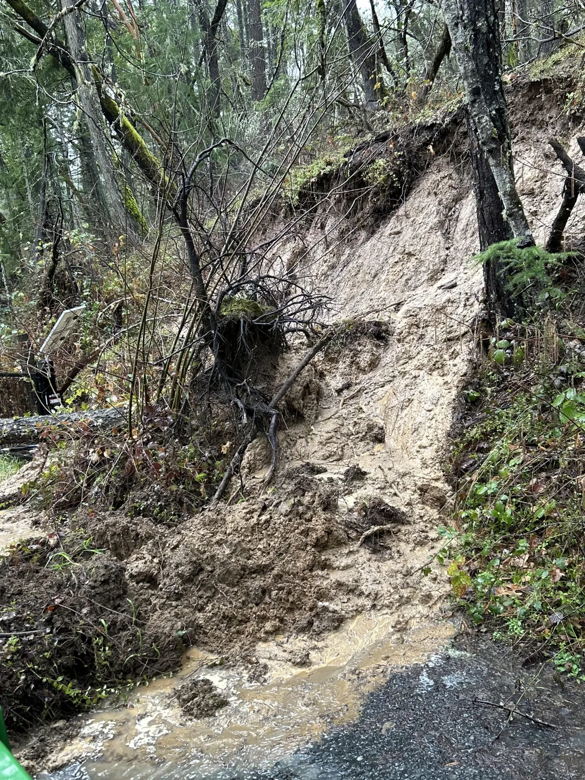 This project was completed on a property in Roseburg, Oregon after a landslide caused soil movement and slope instability, creating safety concerns and limiting use of the area.